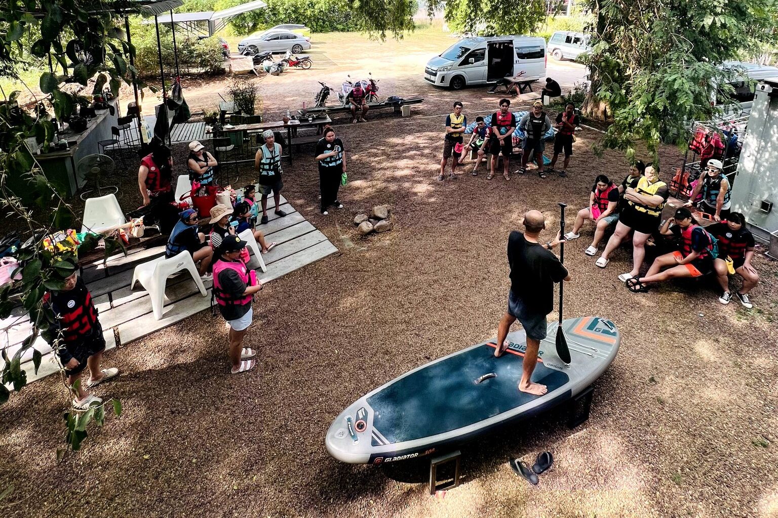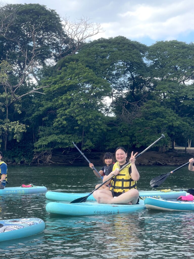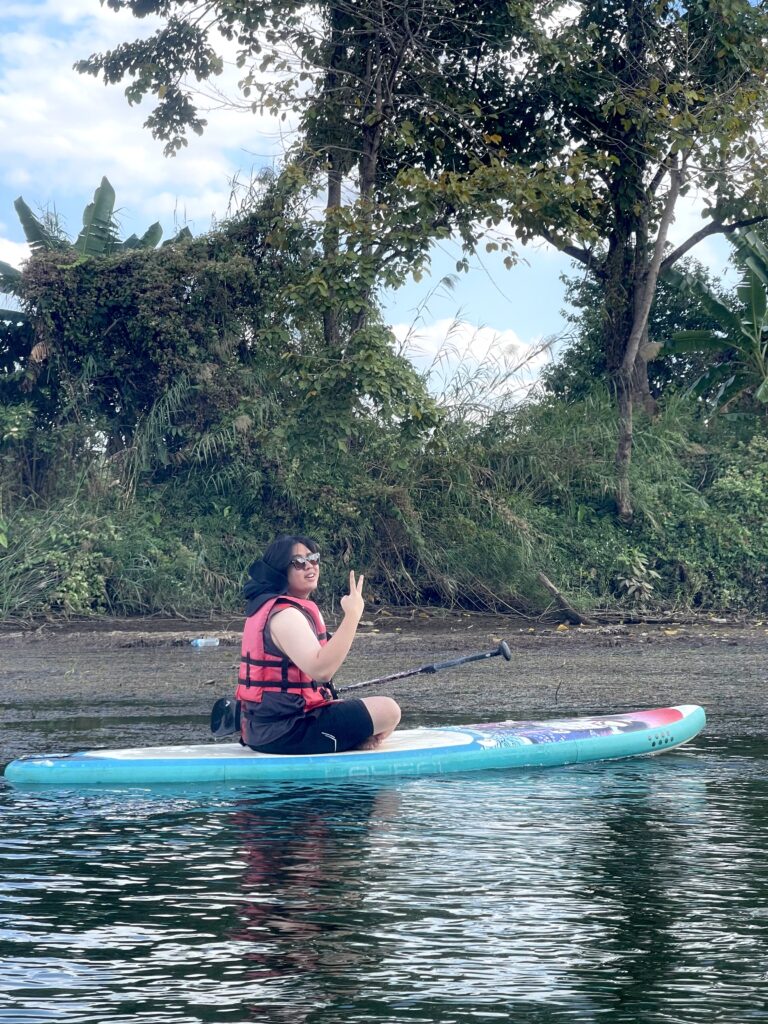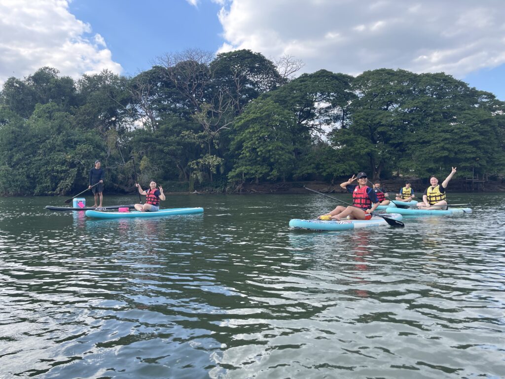 เช้าวันรุ่งขึ้น ทุกคนร่วมรับประทานอาหาร ก่อนออกเดินทางไป คาเฟ่ เพื่อพักผ่อนและถ่ายรูปสวย ๆ จากนั้นต่อด้วยกิจกรรมไฮไลต์ของกาญจนบุรี กับการ พาย SUP Board ในแม่น้ำแคว กับ SEDS สัมผัสธรรมชาติและความสนุกไปพร้อมกัน